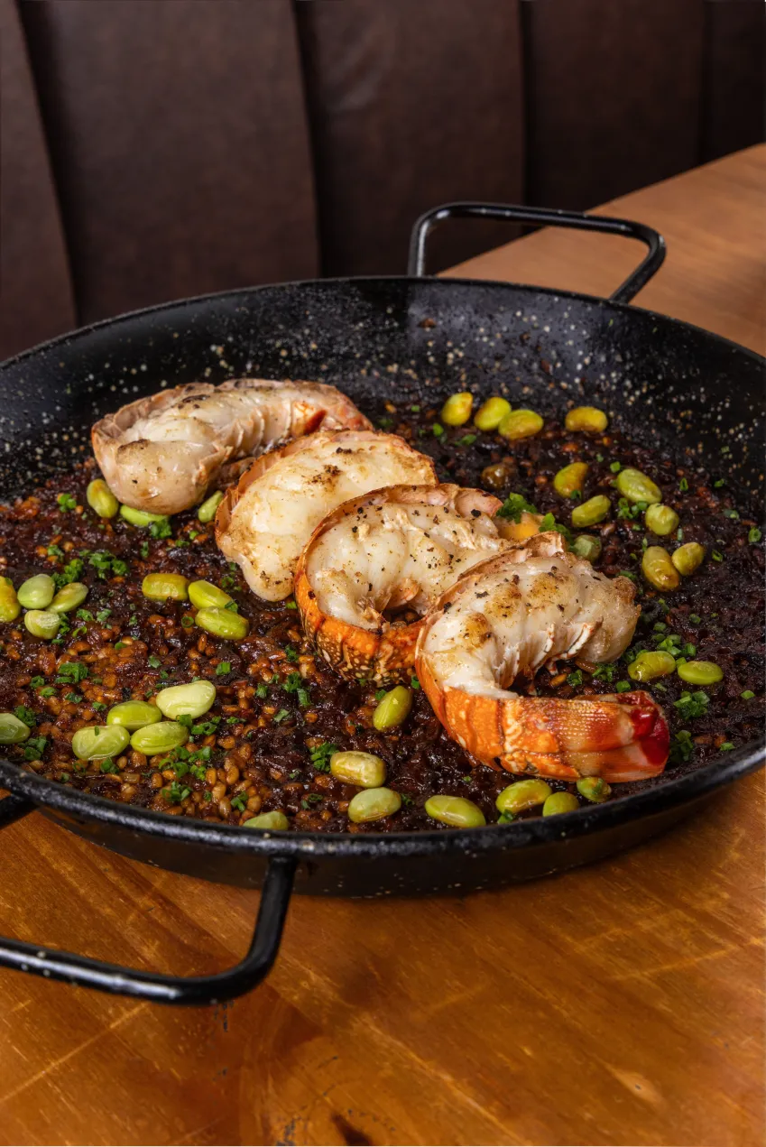 “Socarrat” de lagosta e edamame.